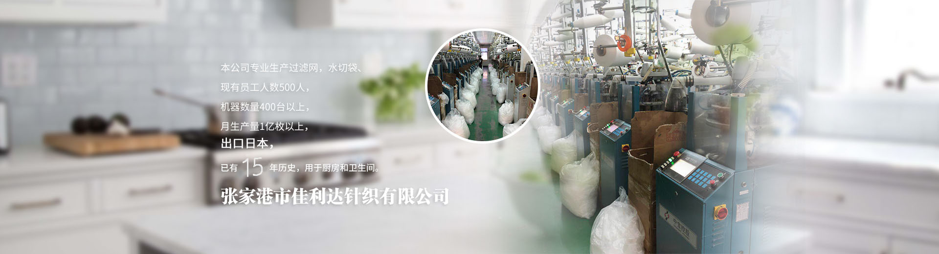 張家港市佳利達針織有限公司地處田垛里二區,北依南通港,東傍上海港,與蘇錫常地區接壤,地理位置優越,水陸交通便利。現有員工人數500人,機器數量400臺以上,月生產量1億枚以上。公司專業生產水切網、滌綸網袋、垃圾過濾袋、無紡布網袋、水槽過濾袋、水槽水切袋、不銹鋼水槽網、廚余過濾、廚房衛生清潔用品等,出口日本已有15年歷史,用于廚房和衛生間,產品暢銷上海、廣州、深圳、南京、蘇州、無錫、常州等全國各地。